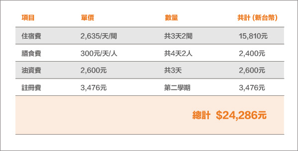 本案資助項目包含智琳清大甄試旅費補助,詳細項目茲列如下:
