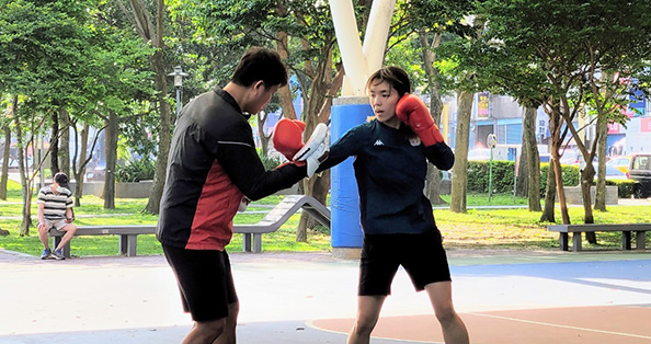 與他校拳擊隊學姊進行對練