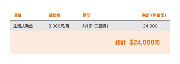 本案資助項目包含2023年第四季的生活費補助,詳細項目茲列如下: