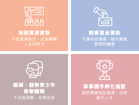 達成青少年拳擊公益平台的目標:「讓偏鄉青少年享受快樂拳擊,找回存在感與成就感,並透過震撼的擂台實戰,提供不同且正向的人生體驗。」