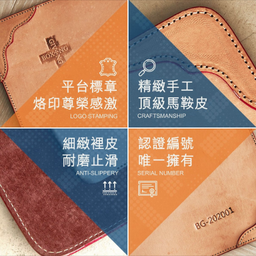 精製手工真牛皮革,強化車縫線增強耐久性,品牌Logo燙印提升質感