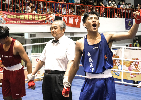 透過「拳勵飛翔計畫」所資助,來自屏東縣來義高中拳擊隊隊長的駱羿同學,扎紮實實地在拳擊擂台上經過4輪的激戰,一路披荊斬棘打敗眾多優秀的選手,順利進入冠亞軍決賽。駱羿從第一回合開始,即以超齡的沉著、與不躁進的戰術貫穿全場。即使在對手連續發動猛攻時,駱羿依然展現冷靜與耐性等待最佳的出拳時機,展現出精準攻擊的訓練成果,最後不負眾望奪下冠軍頭銜。