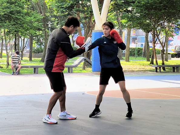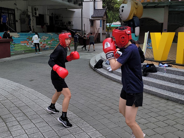 在桃園停留的四天期間,每日皆透過教練的牽線與規劃,有幸能與來自各大專院校的菁英選手進行切磋交流。第一日下午便直接前往位於萬能科大的官方拳擊比賽場地進行實戰觀摩,並在謝明裕教練的帶領下,於賽後與嘉義大學的拳擊校隊進行交流賽並一同進行體能訓練,試練過程中的確從前輩身上獲得不少的經驗與學習對戰技巧,深刻感受不一樣的對戰強度與見識他校的訓練模式,雖然辛苦但智琳抓住機會保持高昂鬥志,對於遭遇不同的對手反而帶來一絲新鮮感與更多的啓發。