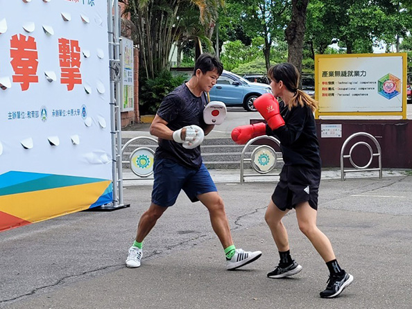 2023年4月28日全國大專運動會於桃園市中壢展開為期十三天匯集國內來自各大專院校頂尖運動選手奮力一搏的精彩賽事。智琳同學透過「青少年拳擊公益平台」的資助,偕同教練從高雄北上,親臨大專盃現場拳擊賽事做實際觀摩並與其他選手交流試練。